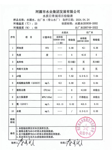 2024年4月24日水質(zhì)檢驗(yàn)報(bào)告 ???