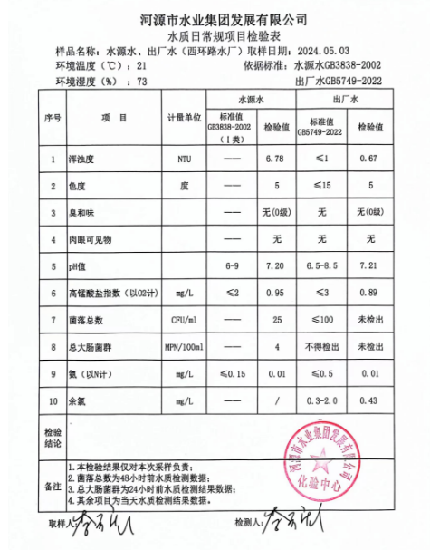 2024年5月3日水質(zhì)檢驗(yàn)報(bào)告 ???