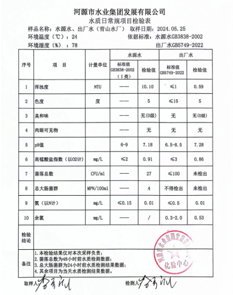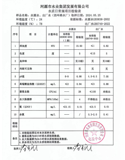2024年5月25日水質(zhì)檢驗報告 ???