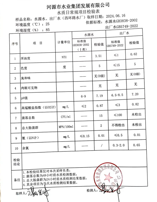2024年6月16日水質(zhì)檢驗(yàn)報(bào)告