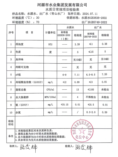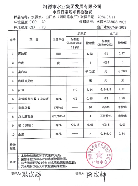 2024年7月11日水質(zhì)檢驗報告