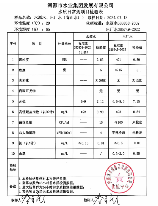 2024年7月13日水質(zhì)檢驗報告