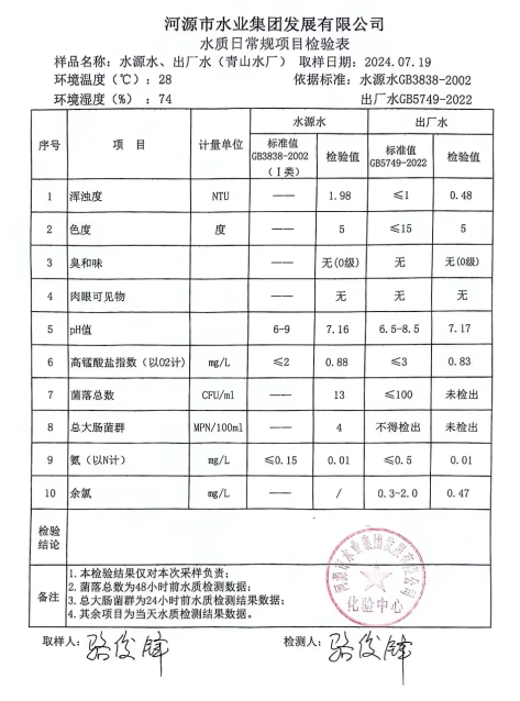 2024年7月19日水質(zhì)檢驗(yàn)報(bào)告