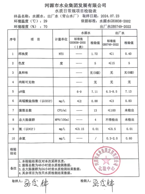 2024年7月23日水質(zhì)檢驗(yàn)報告