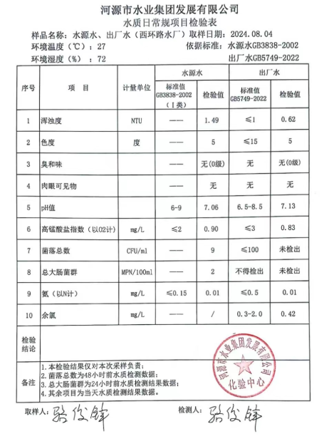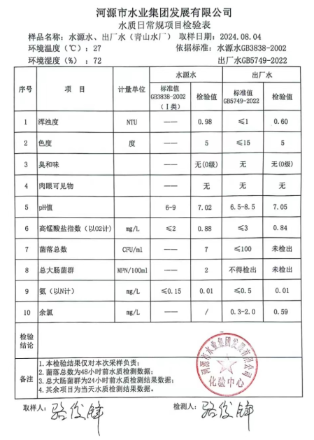 2024年8月4日水質(zhì)檢驗(yàn)報(bào)告