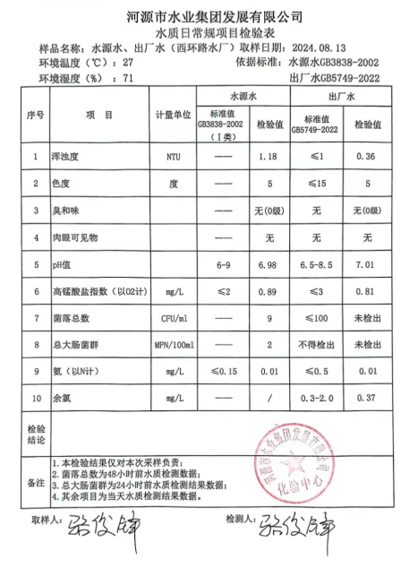 2024年8月13日水質(zhì)檢驗(yàn)報(bào)告