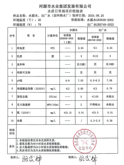 2024年8月25日水質(zhì)檢驗(yàn)報(bào)告