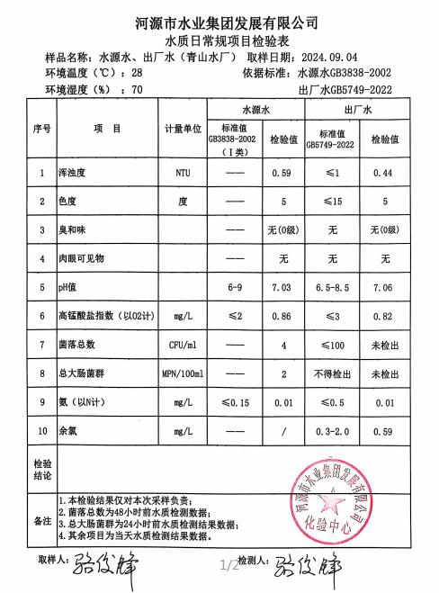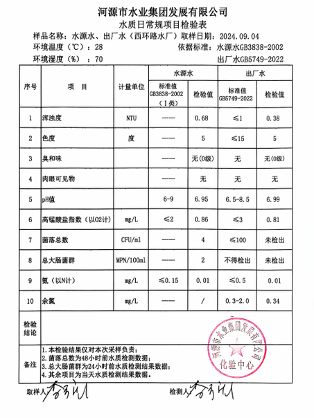 2024年9月4日水質(zhì)檢驗(yàn)報(bào)告