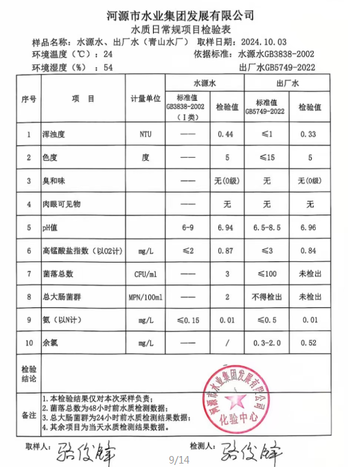 2024年10月3日水質(zhì)檢驗(yàn)報(bào)告